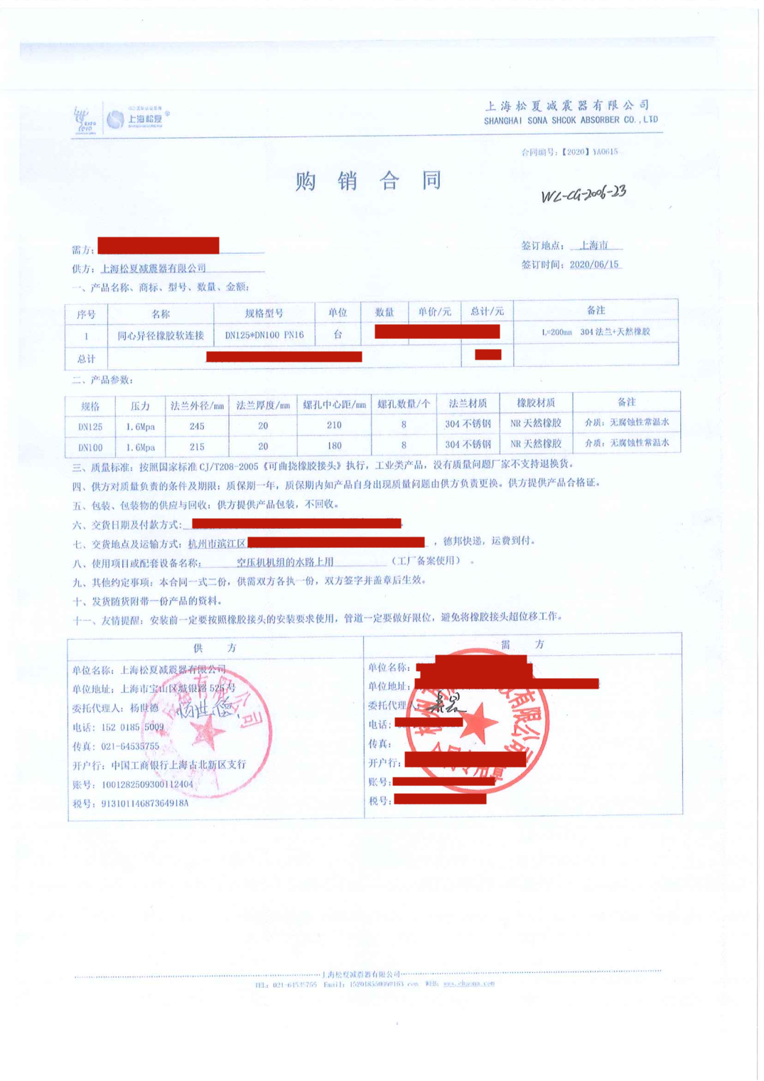 上海松夏減震器有限公司官方網(wǎng)站為您介紹:【空氣壓縮機(jī)機(jī)組配套】上海松夏DN125*100同心異徑橡膠接頭采購(gòu)合同信息,我們松夏公司2020年為【空氣壓縮機(jī)機(jī)組配套】上海松夏DN125*100同心異徑橡膠接頭,起到了減震和降噪的作用,以下是【空氣壓縮機(jī)機(jī)組配套】上海松夏DN125*100同心異徑橡膠接頭采購(gòu)合同介紹。